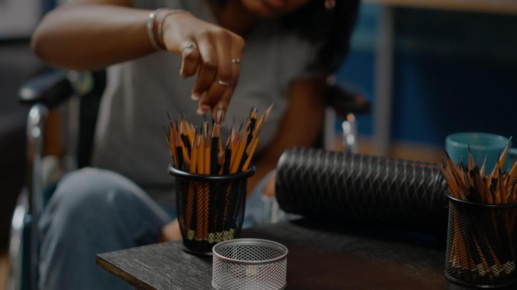 Offene, helle Regale bis zur Decke maximieren Stauraum, ohne schwer zu wirken. Gleichmäßige vertikale Linien beruhigen. Nutze geschlossene Boxen oben fürs Seltene. Kommentiere, ob du lieber offen oder geschlossen planst!
